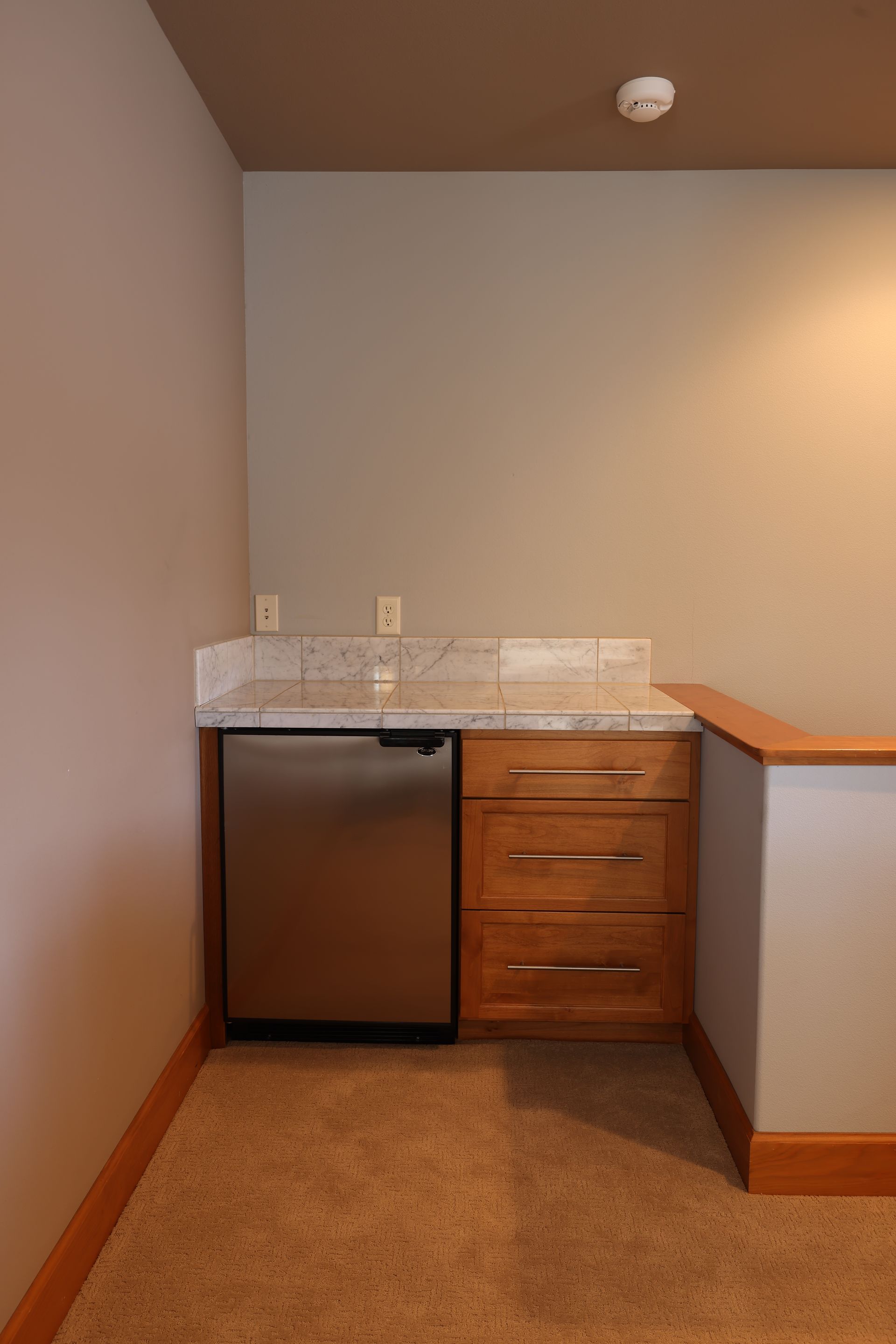 This ADA compliant home features a convenient stair chair and two fully accessible bathrooms, ensuring comfort and convenience for all.